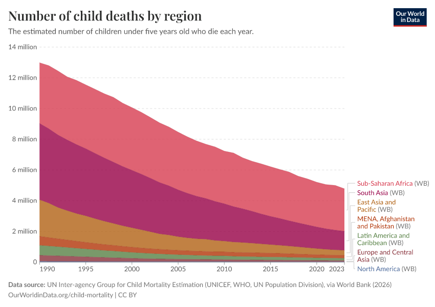 On this page, you will find data and research on child mortality across the world, how it has changed, its causes, and what we can do about it.