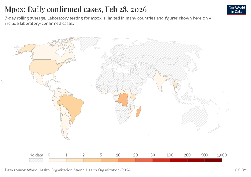 Explore the data produced by the World Health Organization and Africa CDC on mpox (monkeypox).