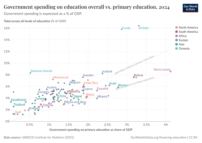 Max Roser and Esteban Ortiz-Ospina (2016) - “Education Spending” Published online at OurWorldinData.org. Retrieved from: 'https://categorical-map-color.owid.pages.dev/financing-education' [Online Resource]BibTeX citation