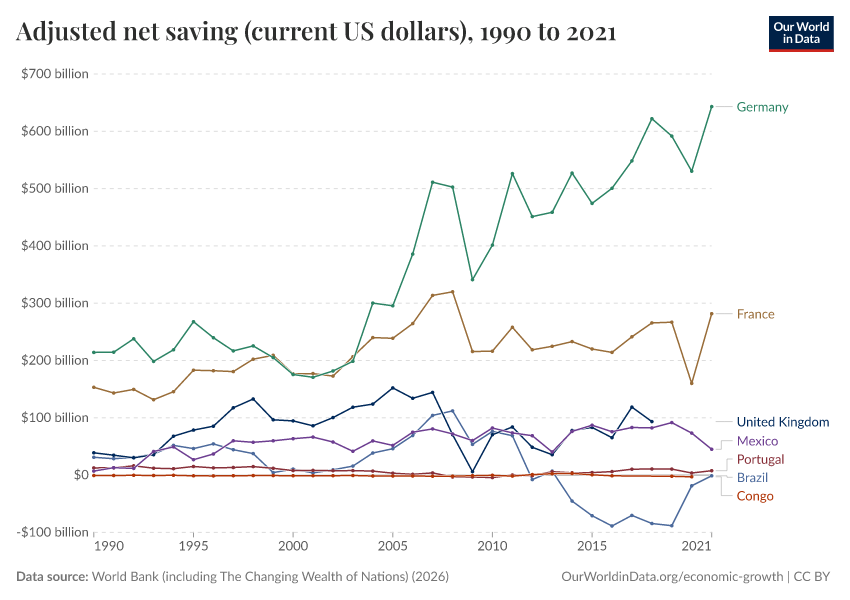 “Data Page: Adjusted net saving (current US dollars)”. Our World in Data (2026). Data adapted from World Bank (including The Changing Wealth of Nations). Retrieved from https://categorical-map-color.owid.pages.dev/grapher/adjusted-net-saving-current-us-dollars [online resource]How to cite this data