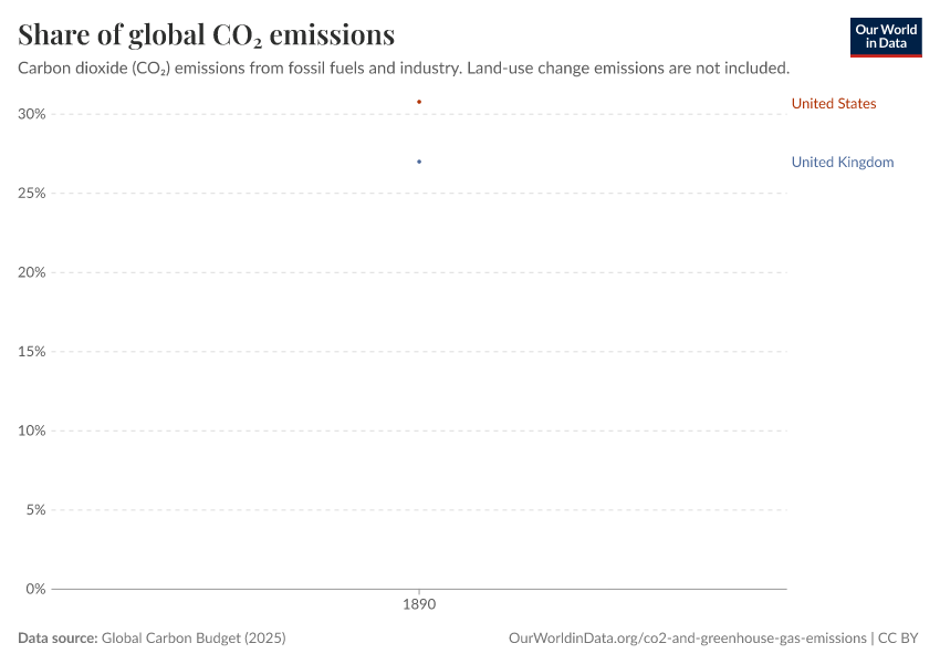 “Data Page: Share of global CO₂ emissions”, part of the following publication: Hannah Ritchie, Pablo Rosado, and Max Roser (2023) - “CO₂ and Greenhouse Gas Emissions”. Data adapted from Global Carbon Project. Retrieved from https://categorical-map-color.owid.pages.dev/grapher/annual-share-of-co2-emissions [online resource]How to cite this data