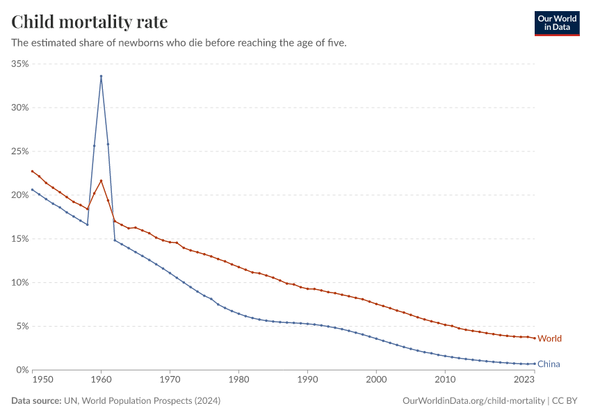 “Data Page: Child mortality rate, ages 0-4”. Our World in Data (2026). Data adapted from United Nations. Retrieved from https://categorical-map-color.owid.pages.dev/grapher/child-mortality-around-the-world [online resource]