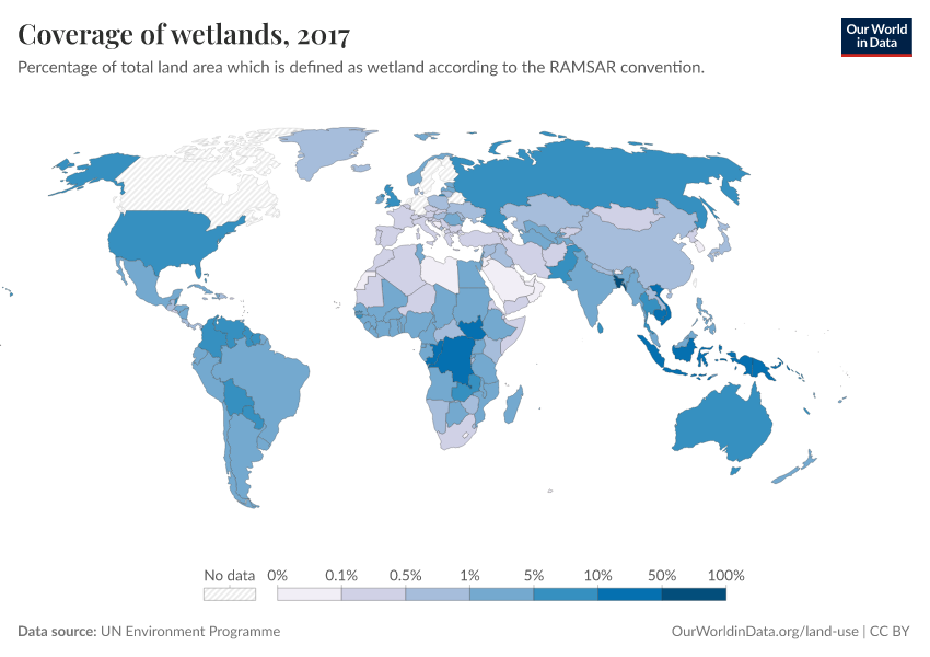 “Data Page: Coverage of wetlands”. Our World in Data (2026). Data adapted from UN Environment Programme. Retrieved from https://categorical-map-color.owid.pages.dev/grapher/coverage-of-wetlands [online resource]How to cite this data