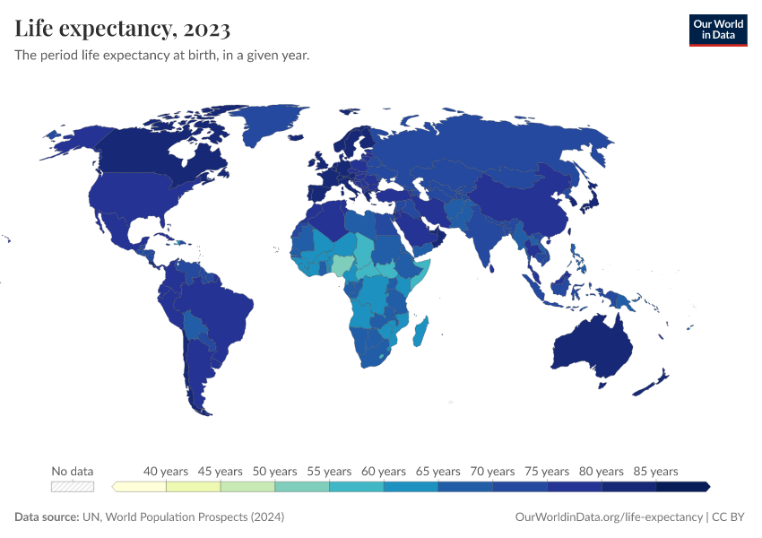 “Data Page: Life Expectancy, age 0”. Our World in Data (2026). Data adapted from United Nations. Retrieved from https://categorical-map-color.owid.pages.dev/grapher/life-expectancy-unwpp [online resource]How to cite this data