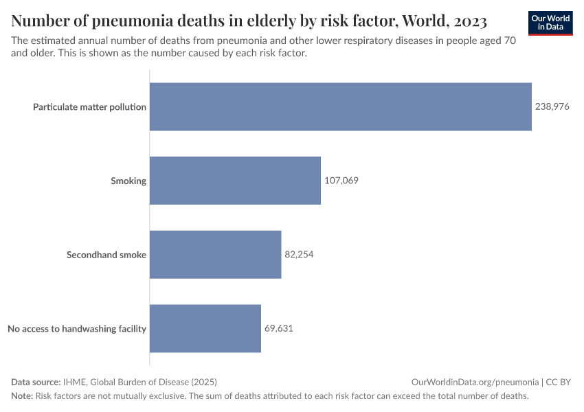 Air pollution is also a major risk factor for pneumonia, as you can see in the chart.