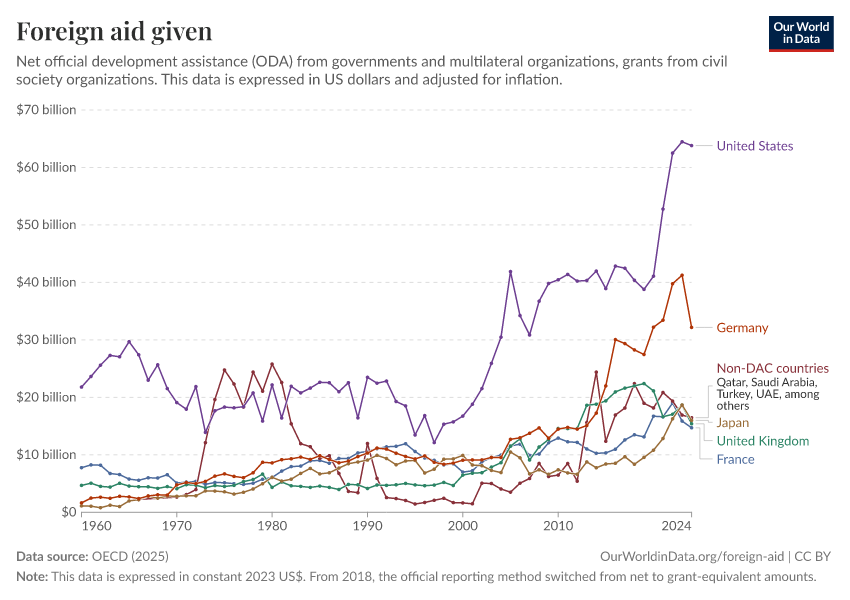 Simon van Teutem and Pablo Arriagada (2025) - “What is foreign aid? How “Official Development Assistance” is measured” Published online at OurWorldinData.org. Retrieved from: 'https://categorical-map-color.owid.pages.dev/what-is-foreign-aid' [Online Resource]BibTeX citation